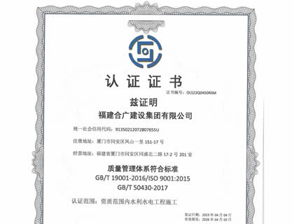 福建合廣建設(shè)集團(tuán)有限公司,注冊資本5188萬元人民幣,公司位于廈門市同安區(qū)鳳山一里151-17號。本公司成立于2013年,公司具備市政公用工程、水利水電工程、房屋建筑工程、公路工程、園林綠化等多專業(yè)施工資質(zhì)。企業(yè)從業(yè)人員100多人,各類專業(yè)技術(shù)人員70多人,其中高級職稱8人,中級職稱40多人,一級建造師6人,二級建造師15多人。